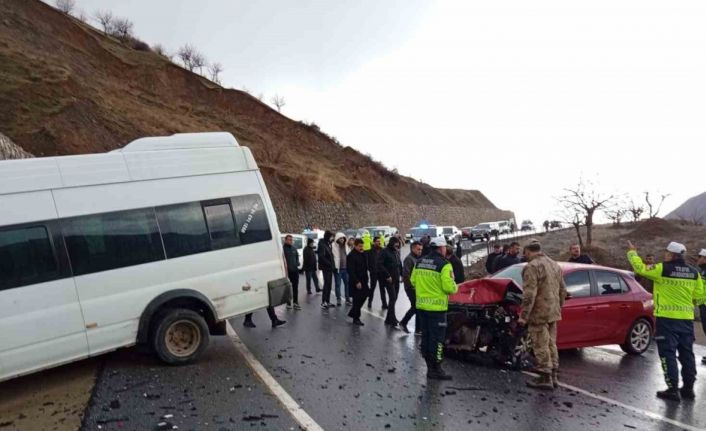 Siirt’in Pervari ilçesine öğrenci servisi ile öğretmenleri taşıyan otomobilin çarpıştığı kazada 9’u öğrenci 12 kişi yaralandı.