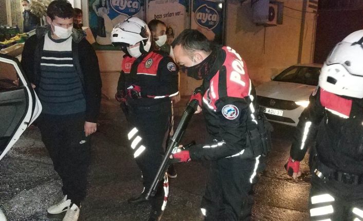 Araçta yapılan aramada olayda kullanılan 1 adet pompalı tüfek, tüfeğe ait fişekler, 1 adet bıçak ve şüphelilerin kaçarken aracın camından dışarı dökünce aracın koltuklarına da dökülen uyuşturucu olduğu değerlendirilen bitki kırıntıları ele geçti. Yapılan incelemede araç sürücüsü olduğu ileri sürülen K.Ö.’nün ehliyetsiz, araçta bulunan O.C.’nin hırsızlık suçundan arandığı, A.D.’nin ise korona virüsten dolayı karantinada olması gerekirken karantina ihlali yaptığı tespit edildi.