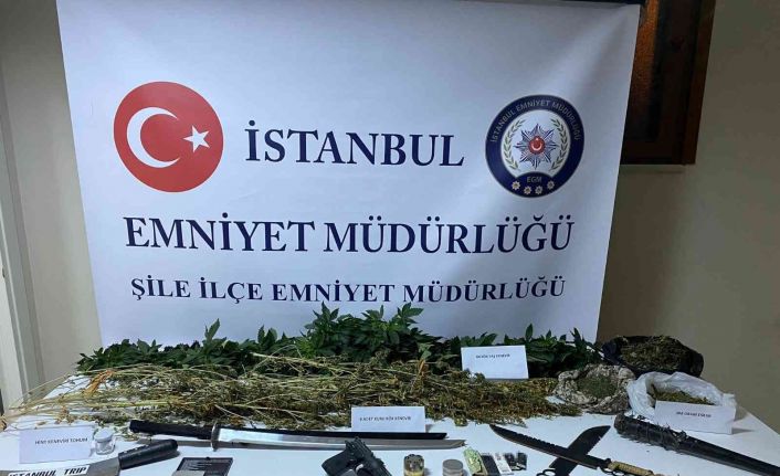 Şile İlçe Emniyet Müdürlüğü ekipleri, ilçede yaşayan 32 yaşındaki D.B. isimli bir kişinin uyuşturucu madde ticareti yaptığını ve evde Hint keneviri yetiştirdiği bilgisini aldı. İlçe polisince önceki gün Şile Çavuş Mahallesi’nde söz konusu eve yapılan baskında D.B. adlı şüpheli yakalanarak gözaltına alındı. Zanlının uyuşturucu serasına dönüştürdüğü diğer evinde yapılan baskında ise saksılara ekili halde 88’i yaş, 6’sı kurutulmuş toplam 94 kök Hint keneviri, 308 gram esrar, daralı ağırlığı 13.5 gram gelen kenevir tohumu, sarılı halde 9 gram gelen 3 parça narkotik madde, 1 samuray kılıcı, 1 zırh satır, 1 dikenli beyzbol sopası, 2 pala, 2 tane madde öğütücü ve bir hassas dijital tartı ele geçirildi.