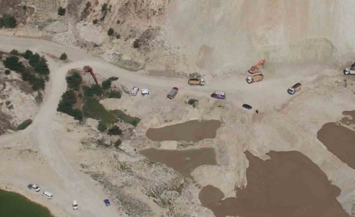 İstanbul Silivri’de bir kum ocağında dün öğle saatlerinde meydana gelen göçük sonrası bir işçi balçık altında kaldı. İşçiyi kurtarma çalışmaları devam ederken, ekiplerin çalışması havadan görüntülendi.