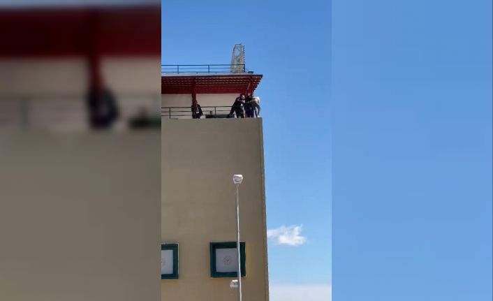 Silivri Devlet Hastanesinin terasına çıkarak intihar girişiminde bulunan şahsı, hastanenin güvenlik personeli engelledi.