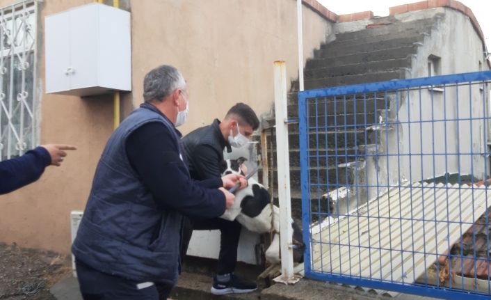Kocaeli’de şimşekten korkup kaçarken demir parmaklıklara sıkışan köpek itfaiye ekiplerince kurtarıldı.