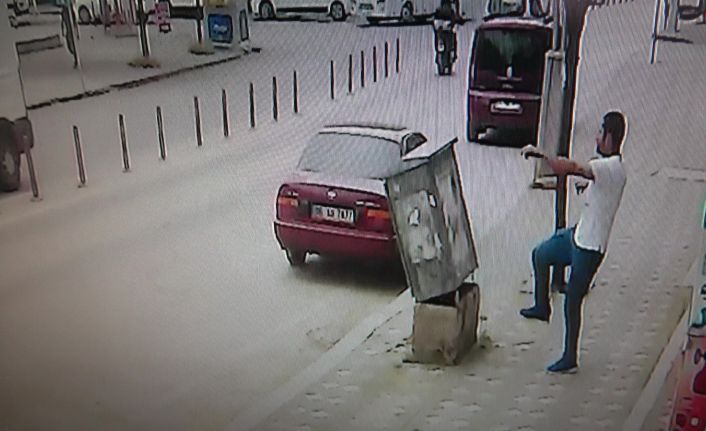 Kocaeli’nin Gebze ilçesinde kaldırım üzerinde yürüyen bir şahıs, ilk olarak koşarak elektrik direğine, daha sonra da telefon panosuna tekme atarak zarar verdi. O anlar ise, bir iş yerinin güvenlik kamerası tarafından saniye saniye kaydedildi.