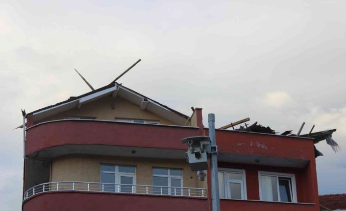 İlçede öğle saatlerinden itibaren etkili olan şiddetli fırtına nedeniyle çok sayıda apartmanın çatısı uçtu, bazı araçlarda maddi hasar meydana geldi.