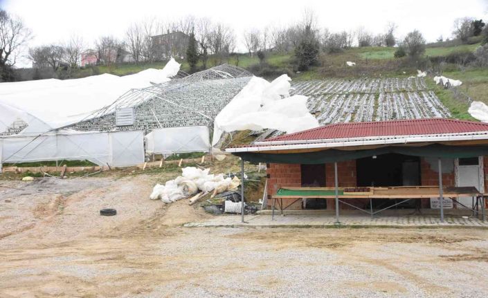 Sinop’ta şiddetli fırtınada çilek serası yıkıldı