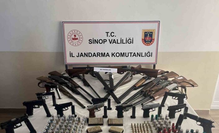Sinop’ta 12 adet ruhsatsız tabanca, 12 adet tabanca şarjörü, 69 adet 9 mm çapında fişek, 18 adet 7.65 mm çapında fişek, 13 adet ruhsatsız av tüfeği, 146 adet av tüfeği fişeği, 345 adet kurusıkı fişeği ele geçirildi.