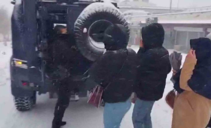 Şırnak merkezde kar yağışı nedeniyle yolda mahsur kalan vatandaşlar, polis ekipleri tarafından ekip aracıyla güvenli şekilde Balveren beldesine ulaştırıldı.