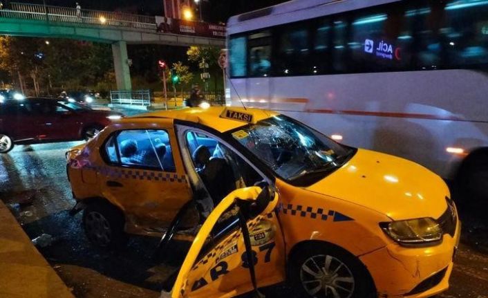 Kaza saat 22.30 sıralarında Şişli Piyalepaşa Bulvarı üzerinde meydana geldi. İddiaya göre, seyir halinde olan taksiye kırmızı ışıkta geçen bir minibüs çarptı. Çarpmanın etkisiyle sert darbe alan taksi, önce beton kaldırıma ardından demir tabelaya çarptı. İhbar üzerine olay yerine polis, itfaiye ve sağlık ekipleri sevk edildi. Taksinin ön koltuğunda oturan kadın yolcu itfaiye ekipleri tarafından sıkıştığı yerden çıkarılarak ambulansa teslim edildi. Kadının durumunun ağır olduğu öğrenilirken, minibüs şoförü, taksi şoförü ve diğer 3 yolcu da ambulansla hastaneye kaldırıldı. O anlar bir vatandaşın cep telefonu kamerasıyla kaydedildi.
