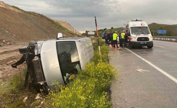 Sivas’ta yoldan çıkarak yan yatan minibüsteki 4 kişi yaralandı.