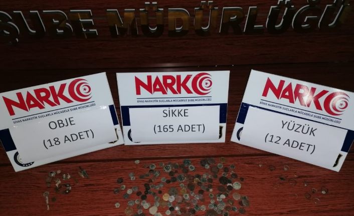 Sivas’ta polis ekipleri tarafından tarihi eser kaçakçılarına yönelik gerçekleştirilen operasyonda 165 adet sikke, 12 adet yüzük ve 18 adet obje ele geçirildi.