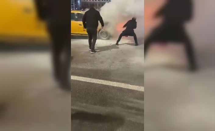 Sivas’ta seyir halindeyken motor kısmında yangın çıkan taksi, itfaiye ekiplerinin müdahalesiyle söndürüldü. Yangın sonrası araç kullanılamaz hale geldi.