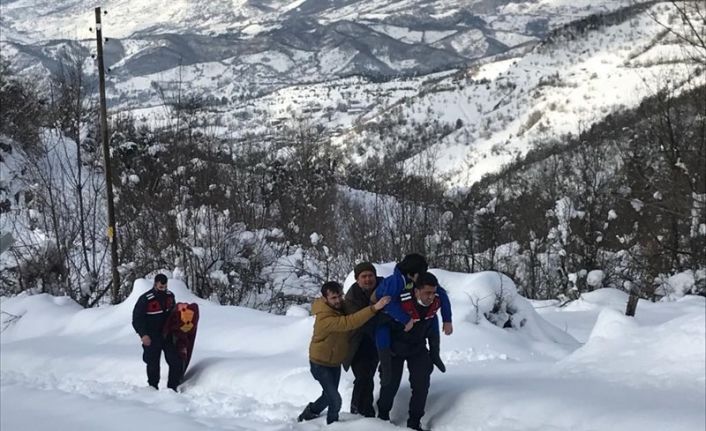 Bartın’ın Ulus ilçesinde yoğun kar yağışı nedeniyle sağlık ekiplerin ambulansla giremediği köyde sobadan zehirlenen vatandaşları jandarma ekipleri sırtlarında taşıyarak bölgeye ulaştırdı.