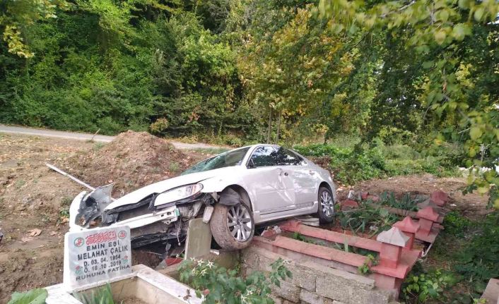 Zonguldak’ın Çaycuma ilçesinde direksiyon hakimiyetini kaybeden sürücü yoldan çıkarak adeta mezarlığa saplandı.