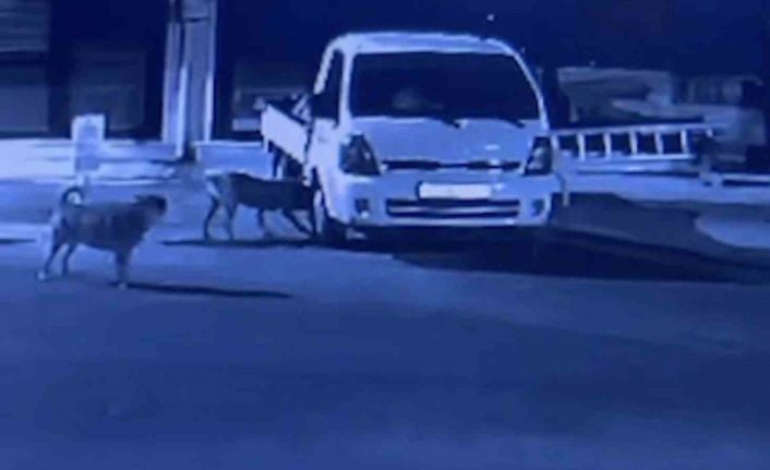 Öte yandan, güvenlik kamerasına yansıyan görüntülerde, grup halindeki köpeklerin aracın etrafında koşup altına girdiği ve bir süre sonra da uzaklaştığı görülüyor.