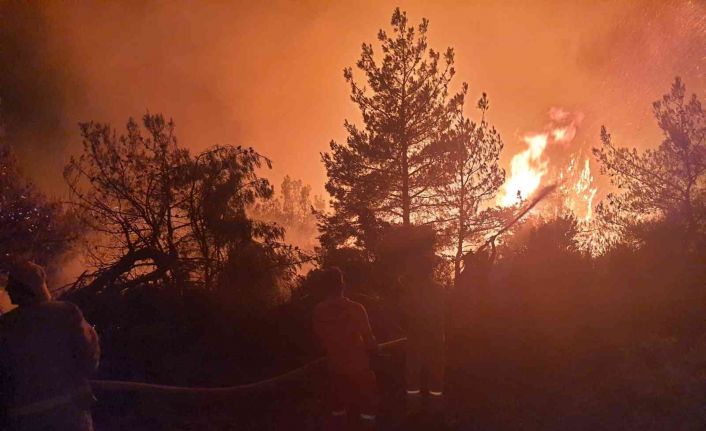 Manisa’nın Soma ilçesinde akşam saatlerinde başlayan yangına karadan ve gece görüşlü helikopterlerle havadan mücadeleye devam ediliyor.