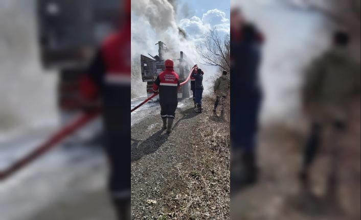 Sondaj makinesi yüklü kamyon alev alev yandı