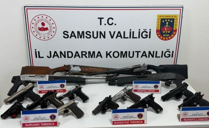 Edinilen bilgiye göre, Samsun İl Jandarma Komutanlığı ekipleri tarafından, 6 şahsın sosyal medyada yaptıkları paylaşımda silahla havaya ateş ederek genel güvenliği tehlikeye attığı tespit edildi. Jandarma ekipleri tarafından şahısların ikametlerinde yapılan aramalarda 5 adet kuru sıkı tabanca, 3 adet ruhsatsız tabanca, 2 adet ruhsatlı tabanca, 1 adet ruhsatlı tüfek ve 3 adet ruhsatsız tüfek ele geçirildi.