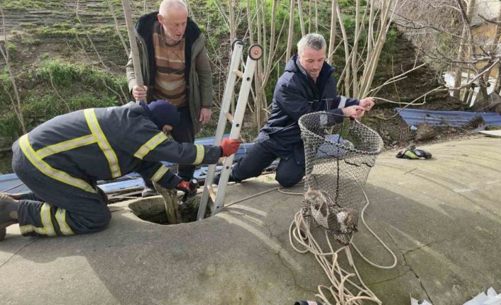 Edirne’de kullanılmayan bir su deposuna düşen yavru köpek, çevredeki vatandaşların ihbarı üzerine kurtarıldı.