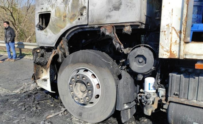 Bursa’da otoban üzerinde seyir halinde olan su yüklü kamyon, alev topuna döndü. O anlar kameralara an be an yansıdı.