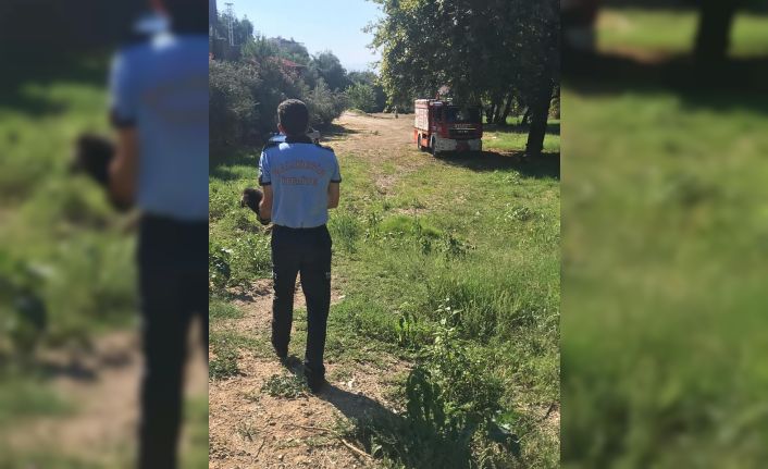 Balıkesir’in Edremit ilçesinde sulama kanalına düşen yavru köpekleri itfaiye kurtardı.