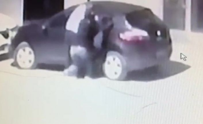 Şahısların otomobil kapısızı zorlayarak açtığı ve içeriden para ve giysi çaldığı anlar güvenlik kamerasına yansıdı.