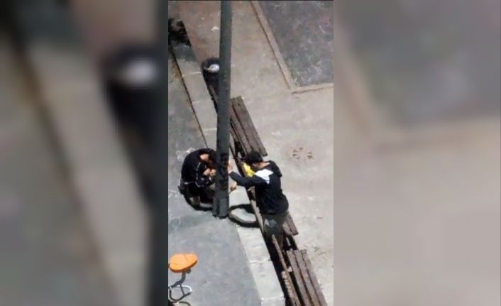 Sultangazi’de iki genç, parkın içinde bulunan aydınlatma direğini ellerindeki çubuklarla kırdı. Yaşanan o anlar cep telefonu kamerasıyla görüntülendi.