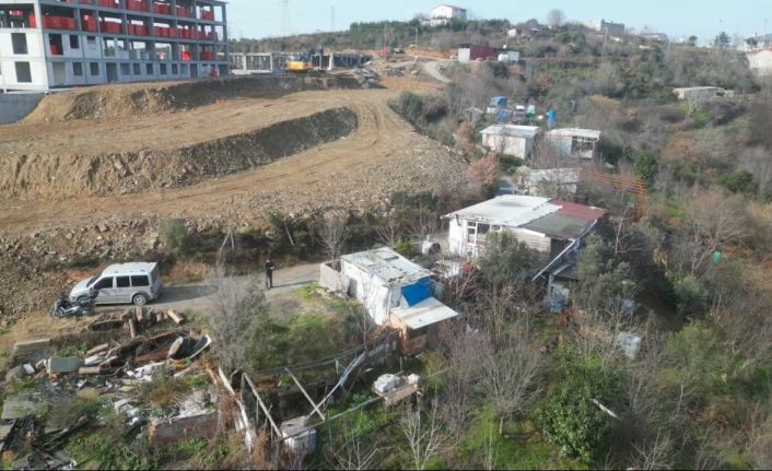 Yaşanan olayda gecekondunun bir kısmı yanarak zarar görürken arazideki hafriyat çalışmalarının devam ettiği anlar ise dron kamerasına yansıdı. Görüntülerde olay yerine gelen çalışanların inceleme yaptığı ve hafriyat çalışmalarının devam ettiği görülüyor.
