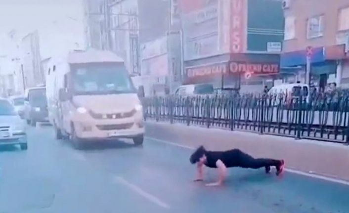 Sultangazi’de yabancı uyruklu şahıs, yol ortasında trafiği durdurarak şınav çekti. TikTok için çekilen görüntüler izleyenleri hayrete düşürdü.