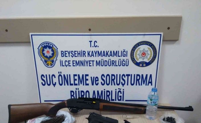 Edinilen bilgiye göre, Beyşehir İlçe Emniyet Müdürlüğü Suç Önleme ve Soruşturma Büro Amirliği ekipleri, Müftü Mahallesi’nde kanal kenarında devriye görevi ifa ettiği sırada durumundan şüphelendiği içerisinde 2 kişi bulunan bir otomobili durdurdu. Araçta yapılan kontrolde 1 adet ruhsatsız 9 milimetre çapında tabanca ve şarjörü ile 6 mermi ele geçirilen ekipler, şahısların ikametlerinde de arama gerçekleştirdi. Adreslerde yapılan aramada, 36 adet 9 milimetre çapında tabanca mermisi, 1 adet tabanca şarjörü, 2 adet tabanca namlusu ve atım yatağı, 1 adet ruhsatsız av tüfeği, 201 adet tabanca parçası ile 2 adet uyuşturucu kullanma aparatı ele geçirildi. Olayla ilgili olarak polis ekipleri tarafından gözaltına alınan Ö.T. ve O.Y. Emniyet Müdürlüğü’ndeki işlemlerinin tamamlanmasının ardından 6136 sayılı ateşli silahlar kanununa muhalefet etmek ve uyuşturucu kullanma ve bulundurmak suçlamalarıyla Beyşehir Adliyesi’ne sevk edildi. İki şüpheli, savcılıktaki sorgulamasının ardından sevk edildiği nöbetçi Sulh Ceza Hakimliğince adli kontrol şartıyla serbest bırakıldı.