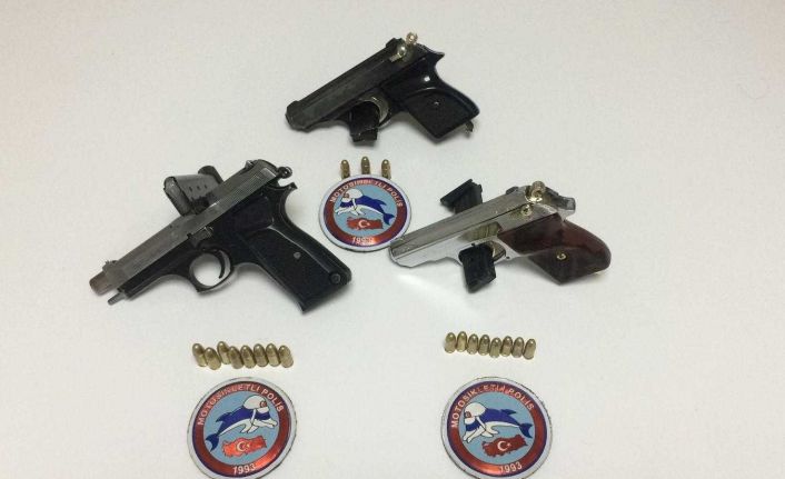 Edinilen bilgiye göre, Güllük ve Zafer mahallelerinde denetimlerde bulunan İl Emniyet Müdürlüğü Asayiş Şubesi Motosikletli Polis ekipleri, şüpheli 3 şahsı yakaladı. Şüpheliler Ahmet A., Muhammet E. ve Sefa K.’nin üzerinde yapılan aramalarda 3 adet tabanca ile bir miktar uyuşturucu ele geçirildi. Şüphelilerin emniyetteki soruşturmalarının sürdüğü öğrenildi.