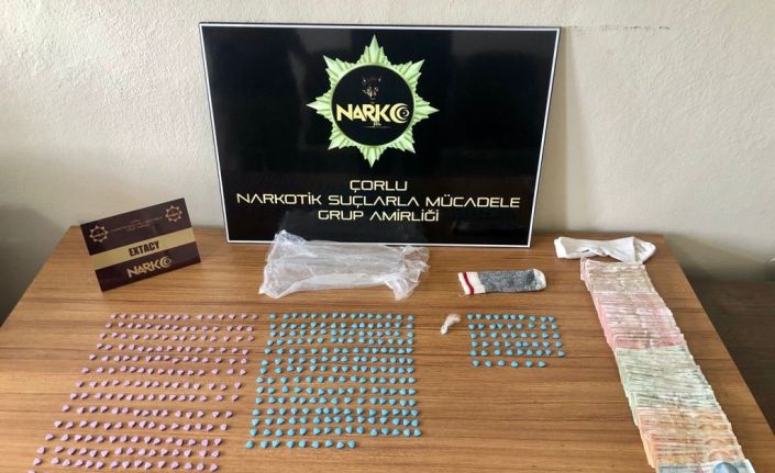 Tekirdağ İl Emniyet Müdürlüğü Narkotik Suçlarla Mücadele Şube Çorlu Grup Amirliği ekiplerince, Hıdırağa (Kore) Mahallesi’nde uyuşturucu ve uyarıcı madde ticareti yapan şahıslara yönelik çalışma yapıldı. Yapılan çalışmalar kapsamında tespit edilen bir araç ve araç içerisinde bulunan 3 şahsın üzerinde yapılan aramada, 464 adet uyuşturucu maddelerden ecstasy hap, uyuşturucu madde satışından elde edildiği değerlendirilen 3 bin 280 TL para ele geçirildi.