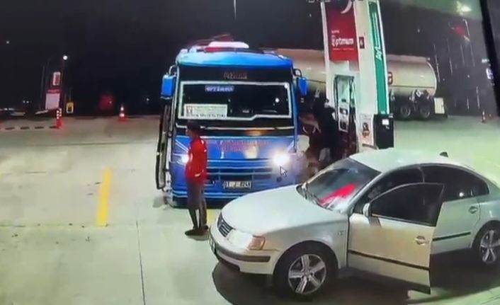 Olay, dün akşam merkez Sarıçam ilçesinde meydana geldi. İddiaya göre, yeni toplu taşıma düzenlemesi kapsamında Buruk güzergahında yeni özel halk otobüsü hatta dahil edildi. Bu duruma tepki gösteren dolmuş şoförleri ile özel halk otobüsü şoförleri arasında zaman zaman gerginlikler yaşandı. Dün akşam dolmuş sürücüsü Gıyasettin S. (26) ve kardeşi Veysel S. (25), akaryakıt istasyonunda yakıt alan özel halk otobüsü sürücüsü Oğuz Özdemir’e (26) taş ve sopalarla saldırdı. Saldırıda tabanca da kullanan şüpheliler, şoförü sopa ve yumruklarla darbetti. Gruptakilerden bir kişi de otomobille şoförü ezmeye çalıştı. Şoför şüphelilerin elinden kurtulup otobüse binerek bölgeden uzaklaşmak istedi. Bu sırada şüphelilerden biri, otobüsün açık olan kapısına tabancayla ateş etti. O anlar, iş yerinin güvenlik kamerasına yansıdı.