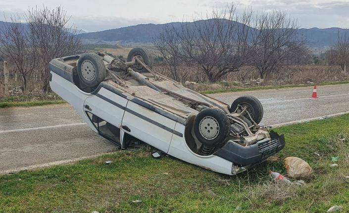 Manisa’nın Sarıgöl ilçesinde sürücüsünün direksiyon hakimiyetini kaybettiği otomobil takla atarak ters döndü. Kazada 2 kişi yaralandı.