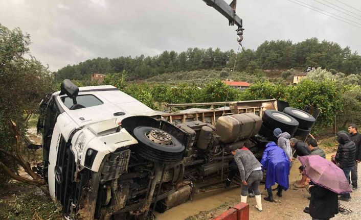 Öte yandan, kamyonun devrildiği yerdeki bahçenin tel çitleri ile portakal ve zeytin ağaçlarının zarar gördüğü bildirildi.