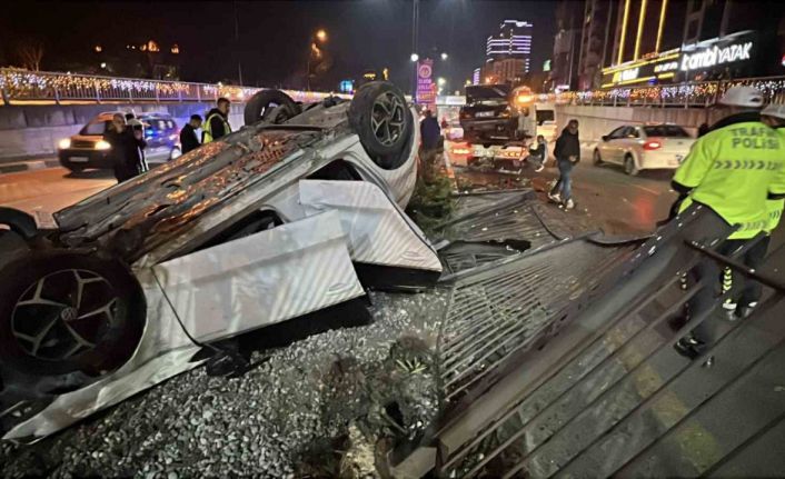Manisa’nın Yunusemre ilçesinde 3 aracın karıştığı zincirleme trafik kazasında takla atan 2 otomobilin sürücüsü, hurdaya dönen araçlardan burunları bile kanamadan kurtuldu.