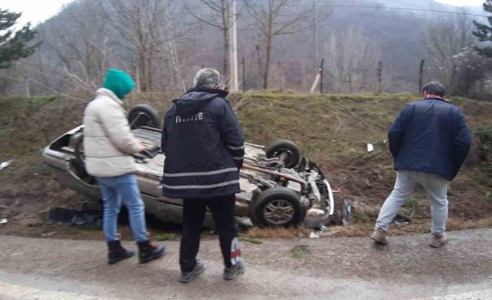Bolu’da sürücüsünün kontrolünden çıkan otomobil takla atarak ters durdu. Meydana gelen kazada sürücünün burnu bile kanamadı.