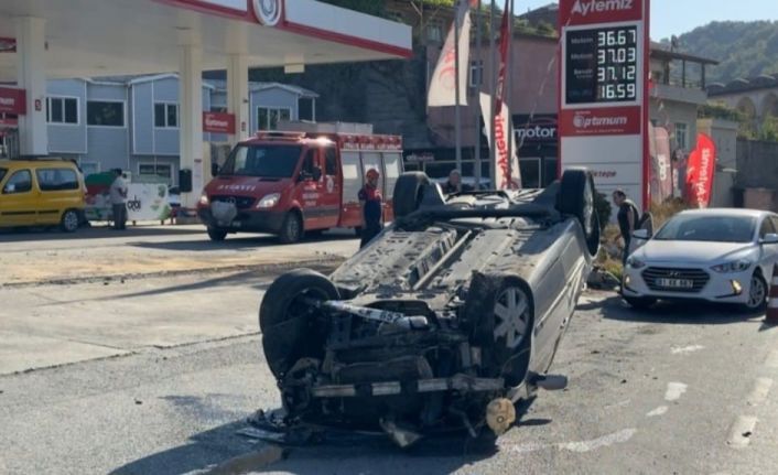 Zonguldak’ın Ereğli ilçesinde yaşanan trafik kazasında sürücü takla atan araçtan kendi imkanlarıyla çıktı.