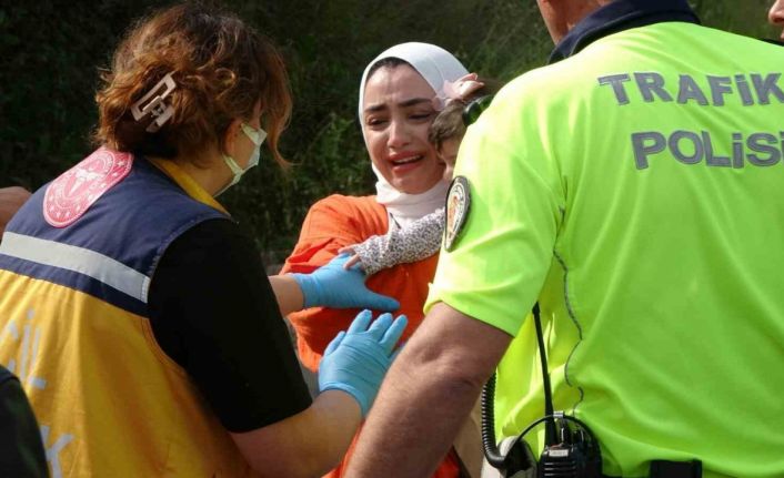 Kazanın ardından otomobilden çıkarılan araç sürücüsü, kucağındaki bebekle birlikte trafik ekiplerine olayı anlatırken gözyaşlarına hakim olamadığı gözlendi.