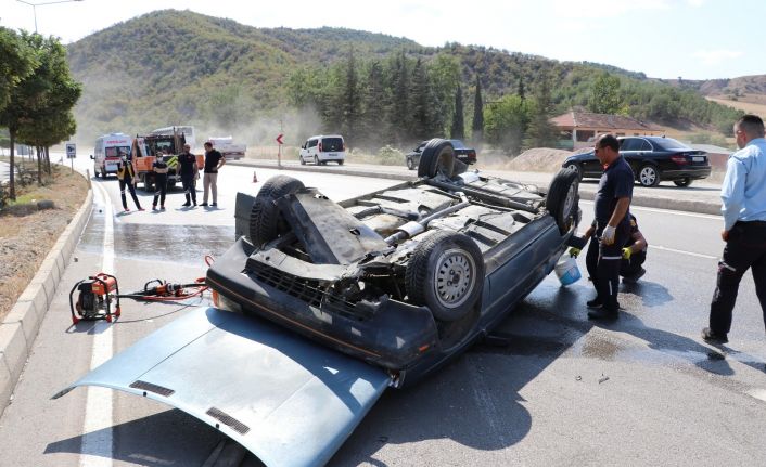 Takla atan otomobilden burnu bile kanamadan kurtuldu