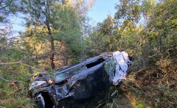 Aydın’ın Yenipazar ilçesinde otomobil sürücüsü, şarampole uçarak takla atan araç içerisinden yaralı olarak kurtuldu.