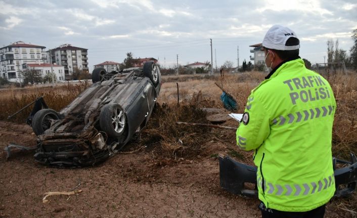 Aksaray’da sürücüsünün direksiyon hakimiyetini kaybettiği otomobil takla atarak önce şarampole sonra da tarlaya devrildi. Kazada sürücü ağır yaralandı.