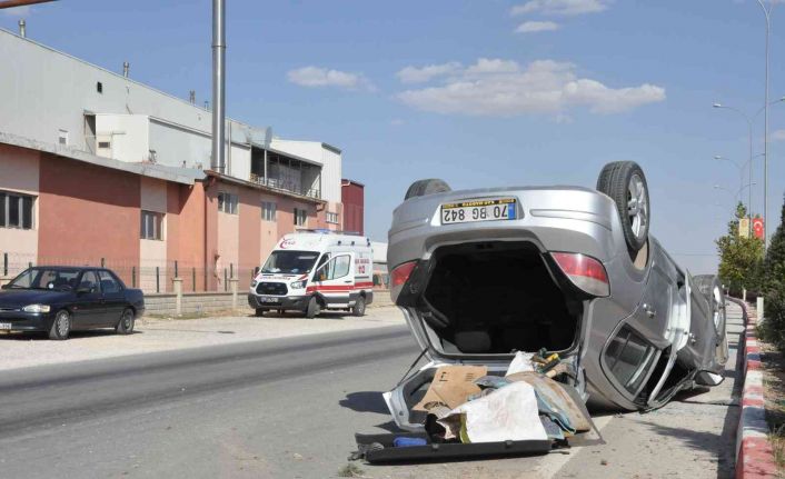 Karaman’da kontrolden çıkan otomobil refüje çarptıktan sonra karşı şeride geçerek ters dönerken, sürücüsü ölümden döndü.