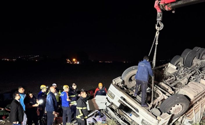 Hatay’da takla atarak ters dönen tırdaki 1 kişi öldü, 1 kişi yaralandı.