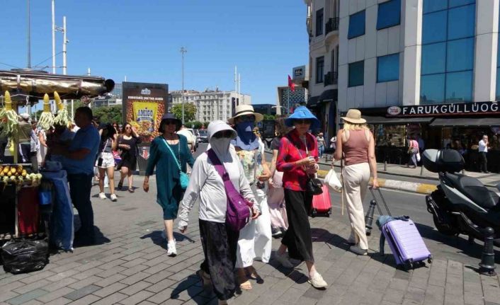 İstanbul’da etkili olan sıcak hava vatandaşlara zor anlar yaşatıyor. Afet Koordinasyon Merkezi’nin (AKOM) İstanbul için günler öncesinden yaptığı yüksek sıcaklık uyarısının ardından kent genelinde sıcak hava etkisini sürdürüyor. Taksim Meydanı’nda sıcaktan bunalan bazı vatandaşlar damacana ile yıkanarak serinlemeye çalıştı. Bazı vatandaşlar ise şemsiye ve şapkalarıyla güneşten korunmaya çalıştı.