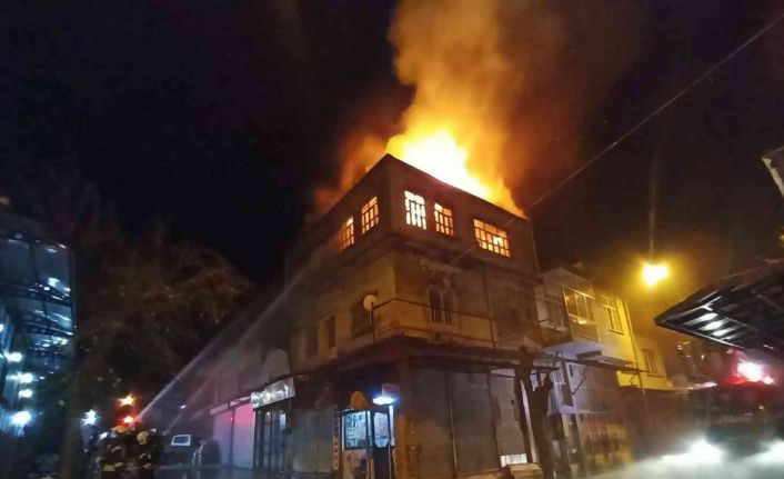 Manisa’nın tarihi çarşısındaki bir iş yerinin üst katında çıkan yangında kısa sürede büyüyen alevler karanlığı aydınlattı. Olay yerine gelen itfaiye ekipleri yangını diğer binalara sıçramadan kontrol altına aldı.