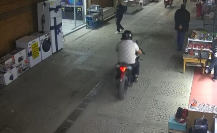 Edinilen bilgilere göre, çarşı içerisinde motosikletiyle kontrolsüz ve hızlı şekilde seyreden sürücü, alışveriş yapan bir vatandaşa çarptı. Çarpmanın etkisiyle yere düşen kişi ayak bileğinden yaralandı. O anlar çevredeki bir iş yerinin güvenlik kamerasınca kaydedilirken, kazayı gören vatandaşlar yaralıya ilk müdahaleyi yaptı. Sürücünün olay yerinden uzaklaşması tepkilere neden olurken, ihbar üzerine ekipler kaçan şahsın yakalanması için çalışma başlattı.