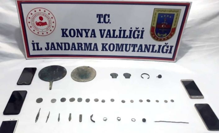 Edinilen bilgiye göre, Konya İl Jandarma Komutanlığı ekipleri tarihi eser kaçakçılığı yapıldığı ihbarı üzerine harekete geçti. Şahısların Akşehir ilçesi Saray Mahallesi’ndeki bir dinlenme tesisinde olduğunu belirleyen ekipler şahısların bulunduğu araca operasyon düzenledi. Operasyonda M.S.A. (52), E.D. (31), E.G. (31), F.Y. (28) gözaltına alındı. Araçta yapılan aramalarda 16 gümüş ve bronz sikke, 3 küpe, 3 ok ucu, 2 kemer tokası, 2 ayna plakası, 1 bronz bilezik, 1 boncuk, 1 zincir ve 4 tarihi obje ele geçirildi.