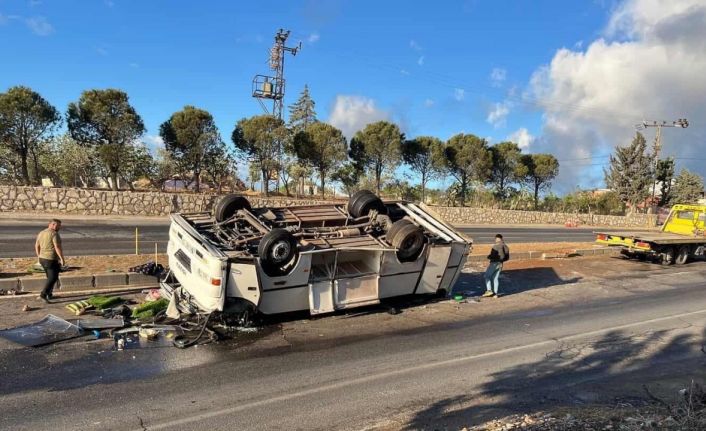 Hatay’da takla atarak ters dönen servis midibüsündeki 25 tarım işçisi yaralandı.