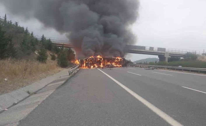 Yola savrulan tırdaki elyaf otoyolunu adeta savaş alanına döndürdü. Dumanlar gökyüzünü kaplarken, tırın lastiklerinde de patlama meydana geldi. Otoyol yangın nedeniyle trafiğe kapatıldı. İtfaiye ekiplerinin müdahalesi ile yangın söndürüldü.