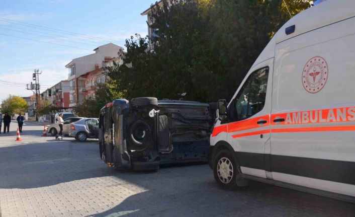 Yeni Mahalle Arslanbey Caddesi’nden şehir merkezine seyir halinde olan M.A. idaresindeki 43 AEZ 792 plakalı hafif ticari araç ile ara sokaktan ana caddeye çıkan Vildan Y. idaresindeki 25 DH 498 plakalı otomobilin çarpışması sonucu M.A. yönetimindeki araç çöp konteynerine çarparak takla attı.
